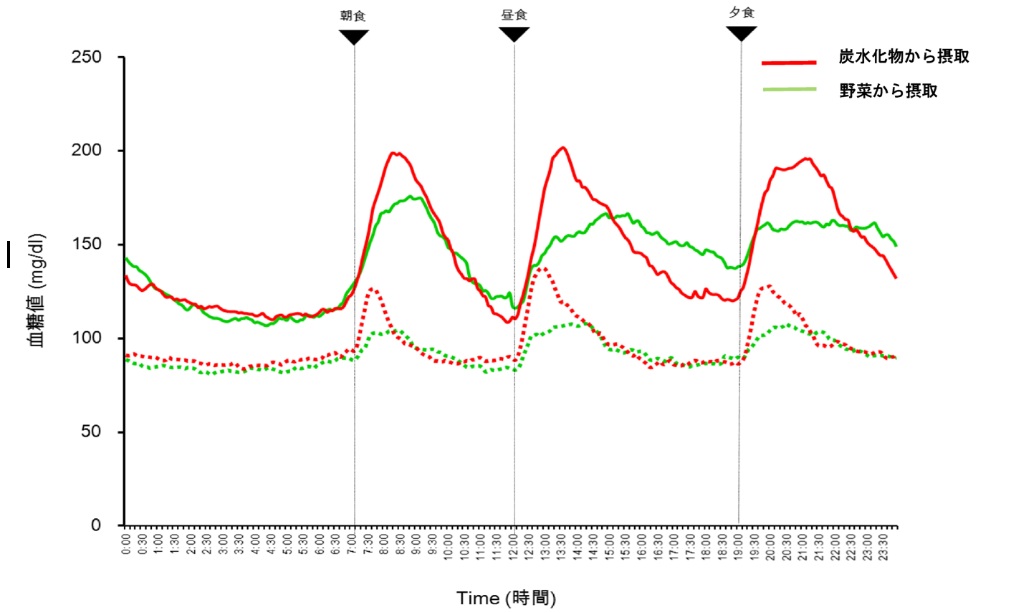 1つは、野菜を先に食べることにより野菜に含まれる食物繊維が後から食べる糖質の消化吸収を遅らせて、食後の急激な血糖上昇を抑える効果があるからとされています。