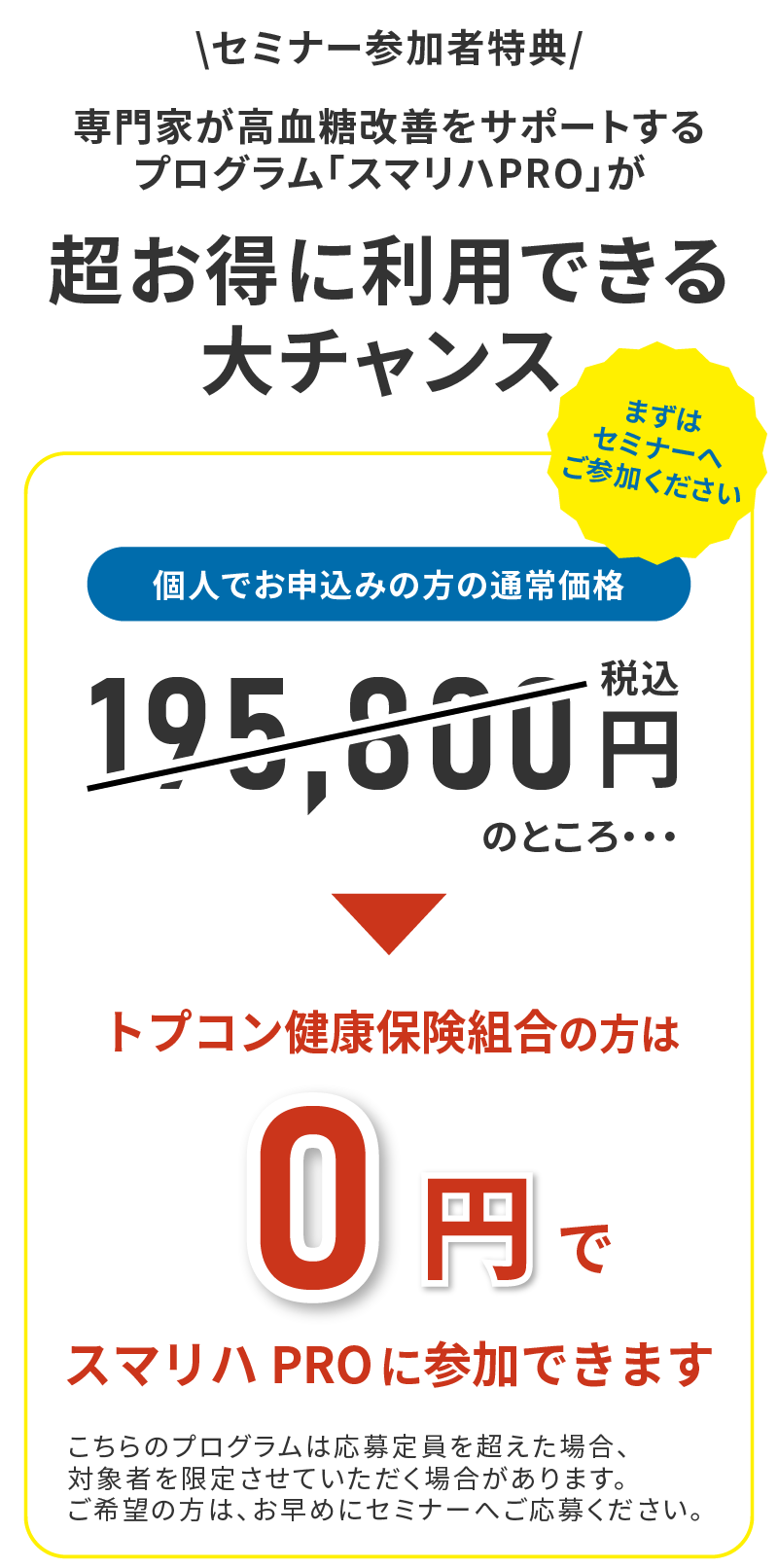 個人差はありますが、セミナーの内容を実践いただけるだけでも高血糖改善に効果があります。